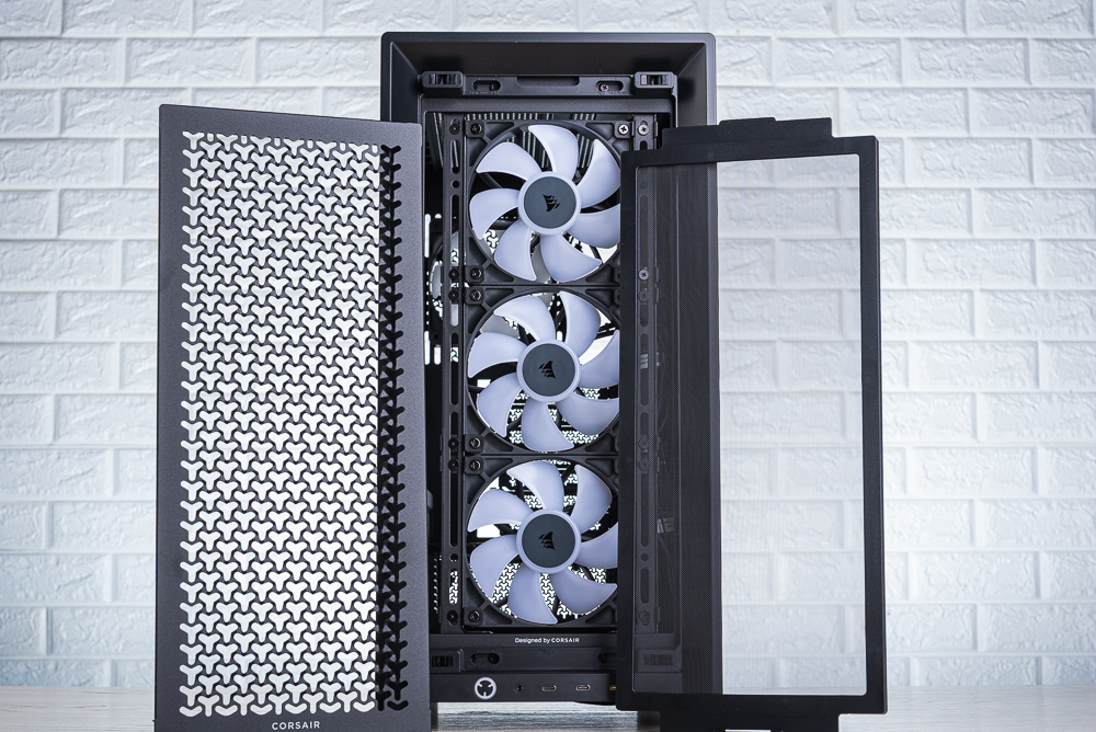 FRAME 4000D 採用模組設計,讓機殼的分艙、主機板托架都可移除,而且機殼的前門與上方風扇支架全面採用「InfiniRail」設計,風扇框架處完全開孔不影響風扇氣流,且機殼前方的雙軌 InfiniRail 支援 3 顆 120mm 風扇、2 顆 140mm 或 200mm 等風扇安裝。至於機殼上方則支援 3 顆 120mm 或 2 顆 140mm 風扇與 360mm 水冷散熱器安裝。