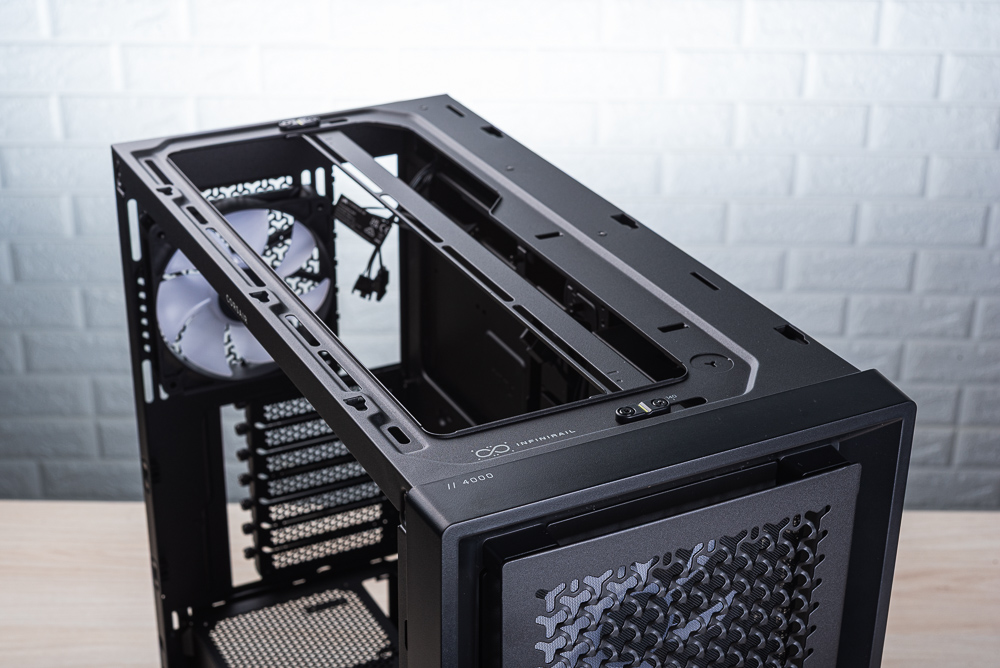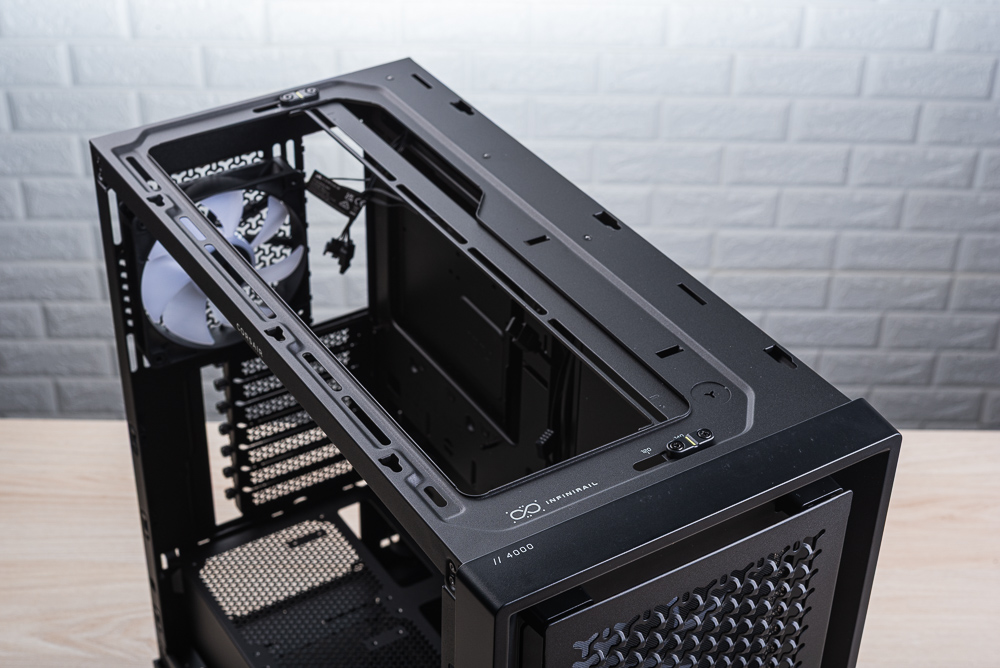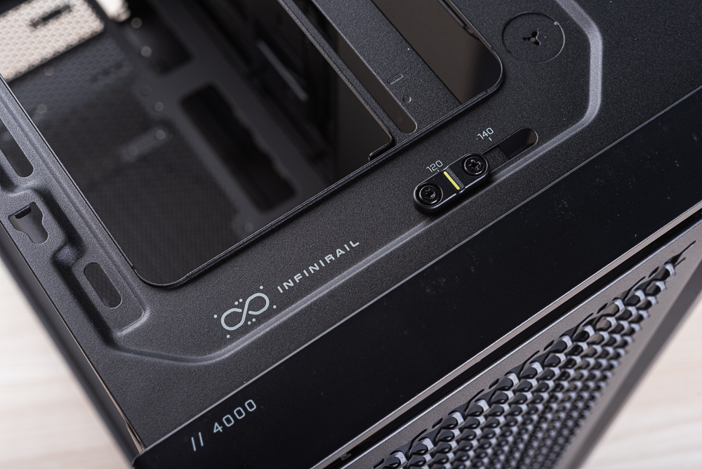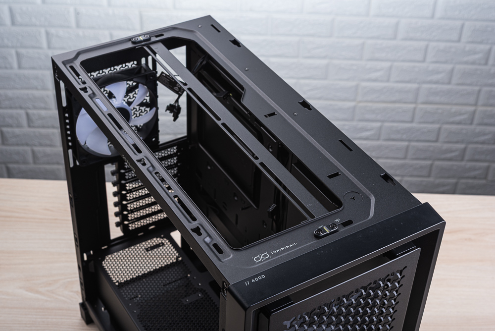 ↑ 機殼上方的 InfiniRail 風扇框架設計。