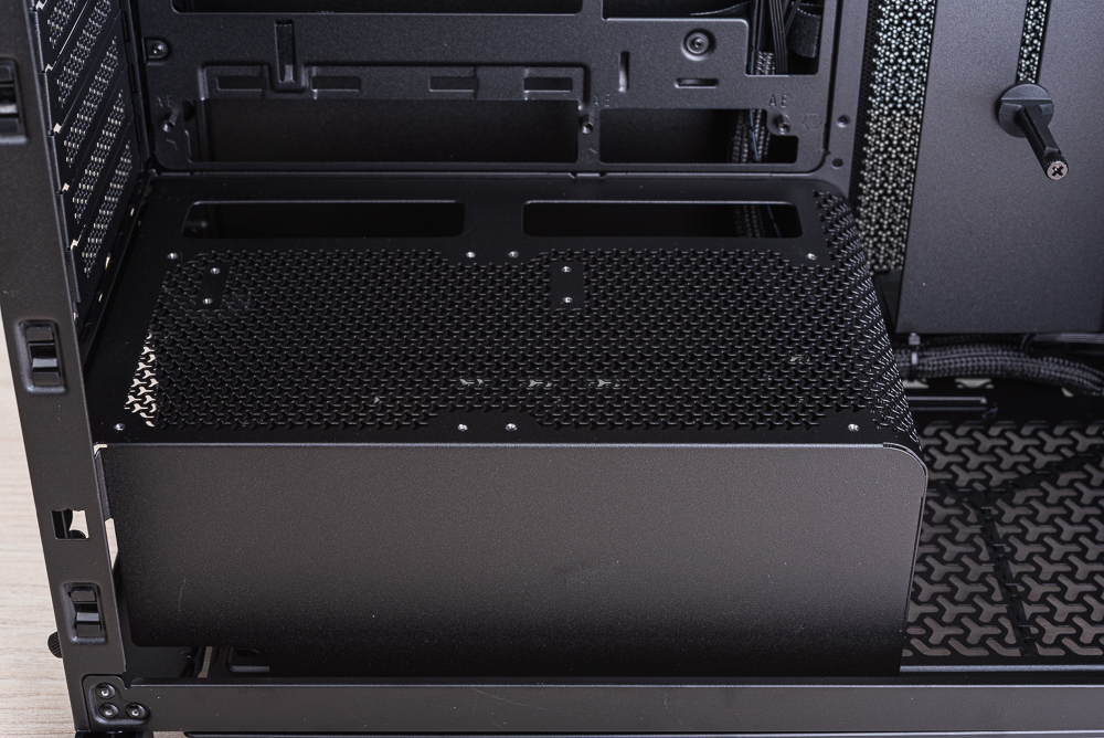 FRAME 4000D LCD RS ARGB 在左側內部空間主要更改了「分艙」配置,改為電源分艙罩的設計,讓出一些空間安裝 LCD 螢幕側板。