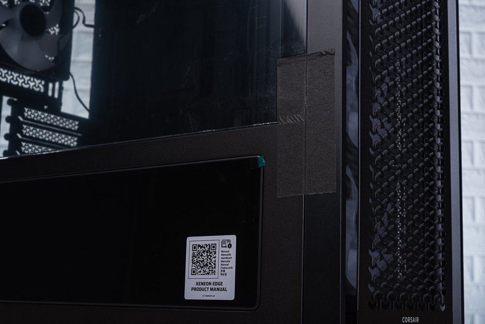 ↑ 固定貼紙避免運送時脫落;XENEON EDGE 說明書的 QR-Code。