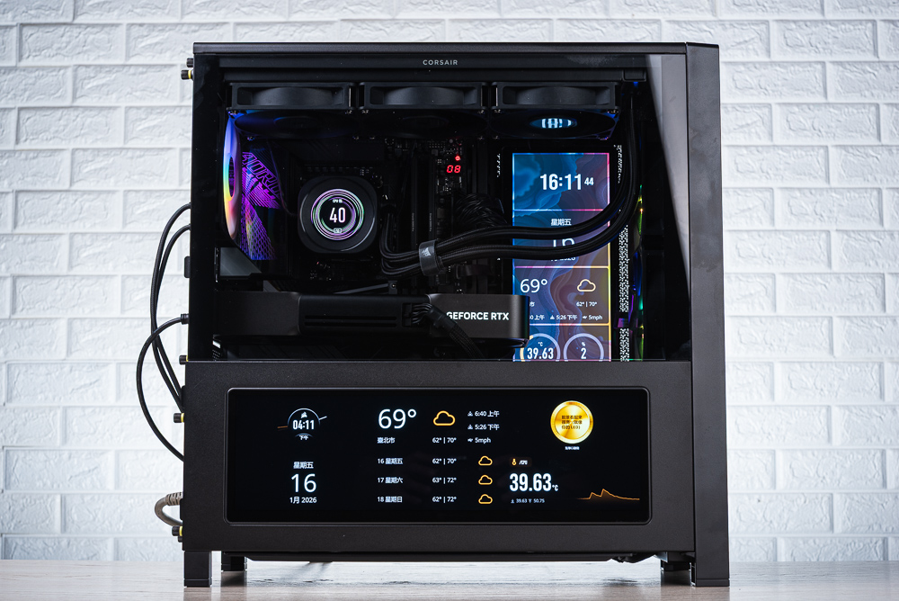 這次組裝後反而覺得,機殼上的 14.5 吋螢幕非常適合做為數位相框,可以讓電腦開機就顯示喜愛的人物、寵物照片,甚至是做為電腦改裝的造型視覺顯示器使用;而搭配上會建議挑選具備 USB4 / Thunderbolt 4 的主機板,如此一來連接螢幕時會更佳便利。