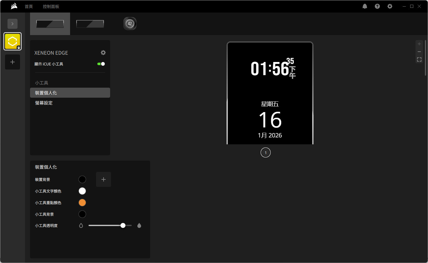 不同的小工具可依據版面位置來設定顯示的尺寸,這可依據各位玩家的需求來自訂,而且 LCD 下方還可以新增不同的面板,讓玩家可以在 iCUE 中切換不同的面板。