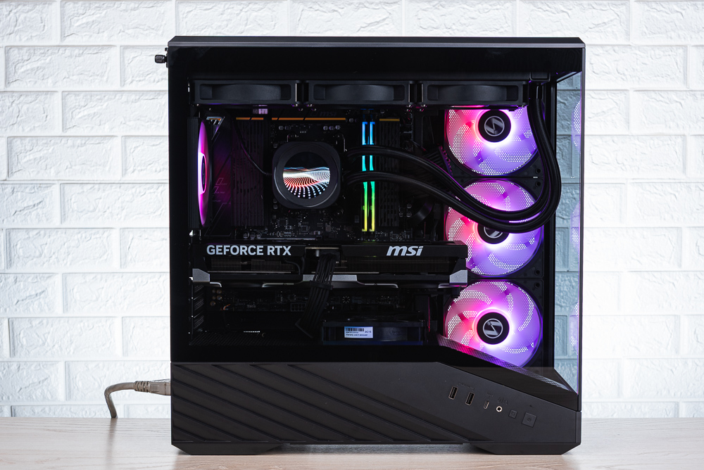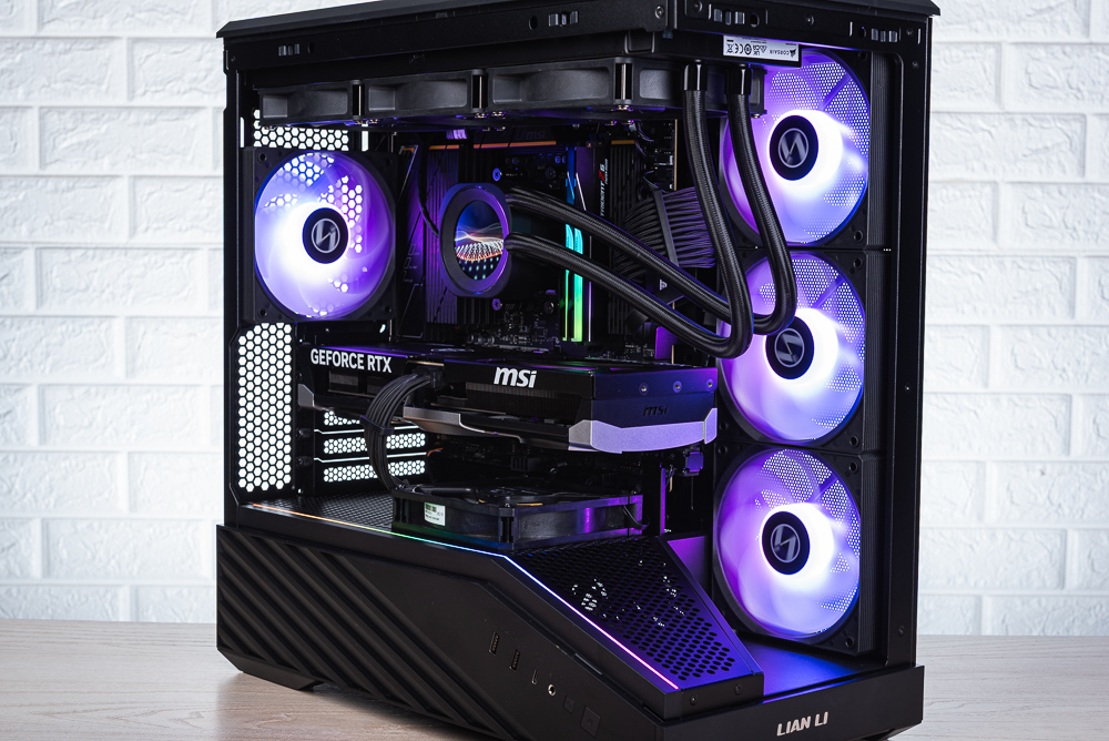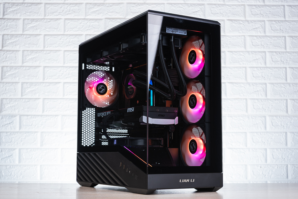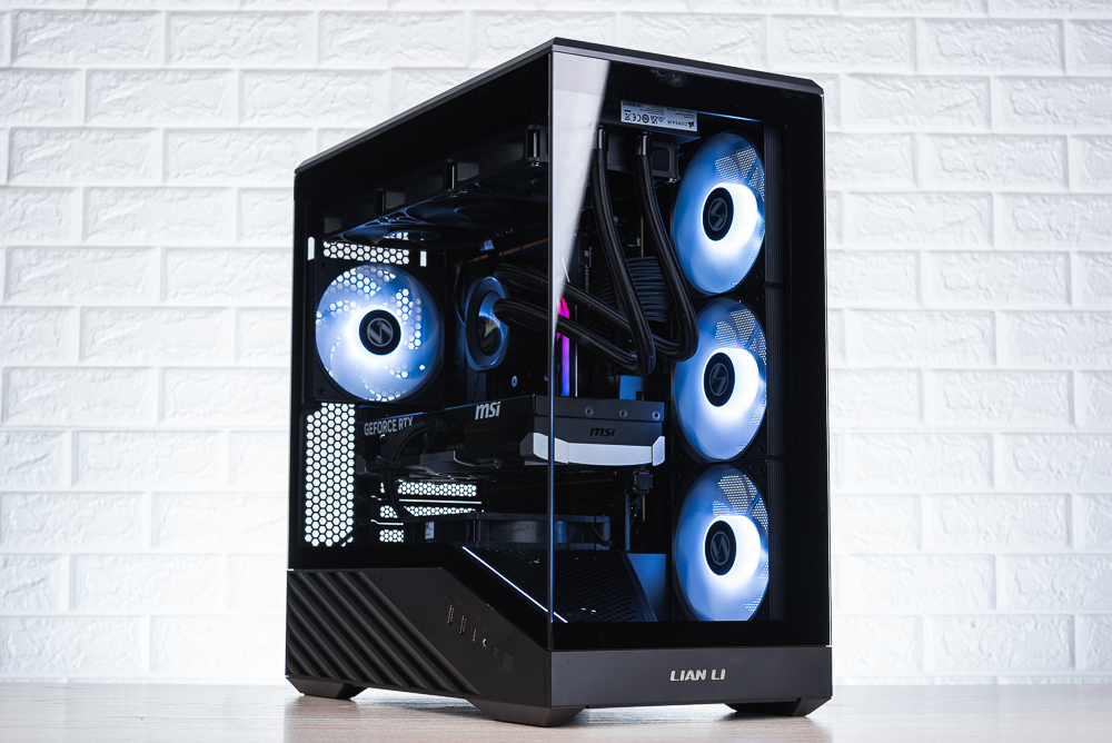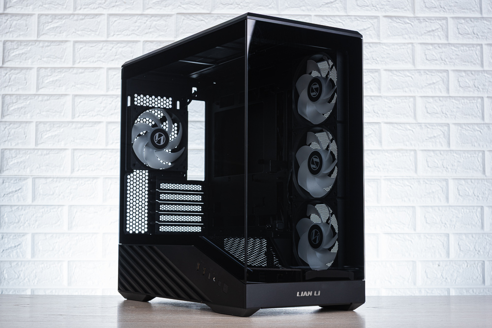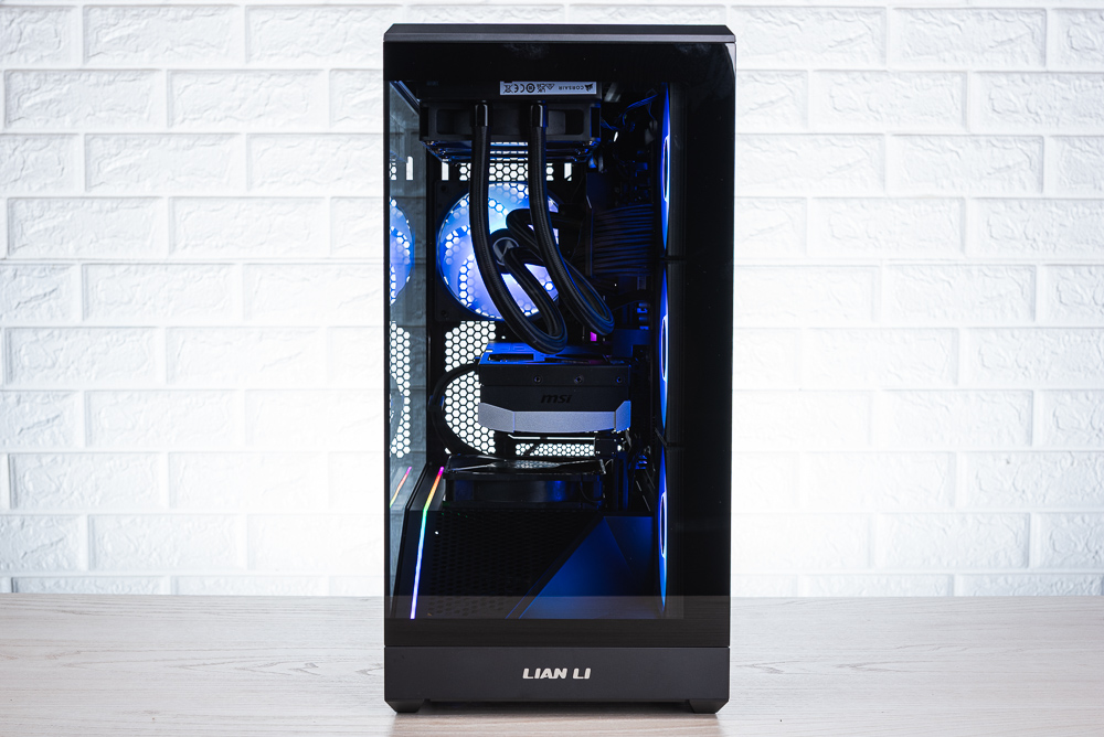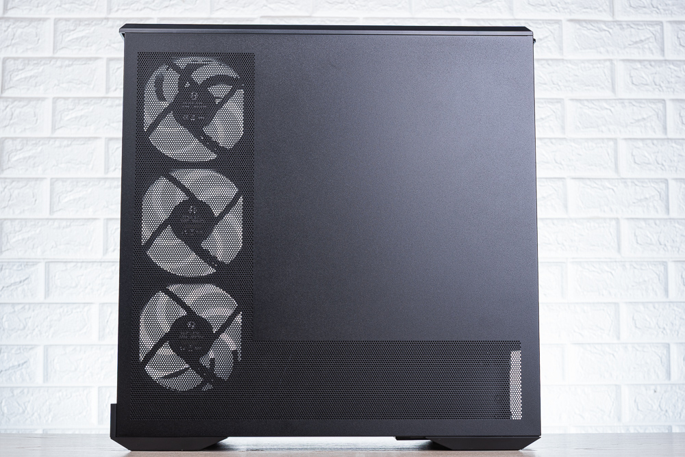 ↑ 機殼左側視覺,但因為玻璃側透的黑邊太高,導致分艙的 RGB 燈條要較高的視角才能看到。