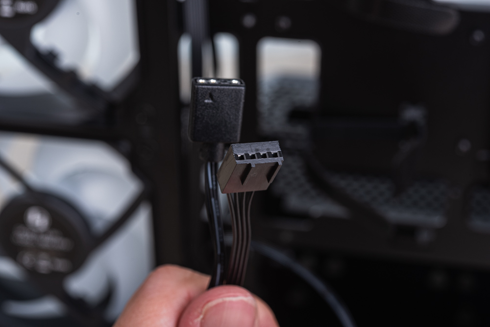 機殼預裝的風扇採用特殊「飛機頭」連接,線材帶有卡扣一線連接 PWM 與 ARGB。而機殼 4 顆風扇僅需連接 1 個 4pin PWM 與 1 個 ARGB 3pin 即可。
