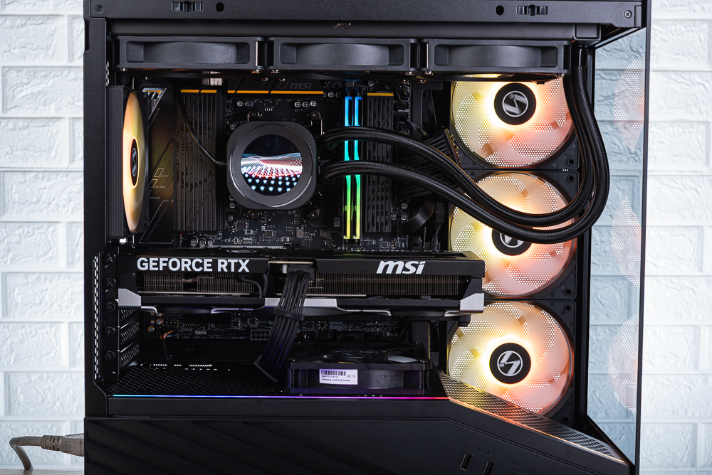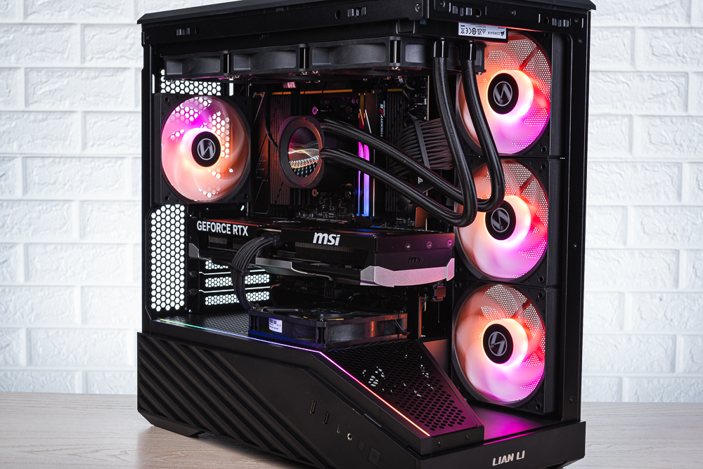 Vector V100R MINI 實機展示,此次安裝使用 Ryzen 7 9800X3D、MSI B850MPOWER 主板、MSI 5070 Ti 16G VENTUS 3X OC 顯卡、NAUTILUS 360 RS LCD 水冷、Lian Li Edge1300 電供。