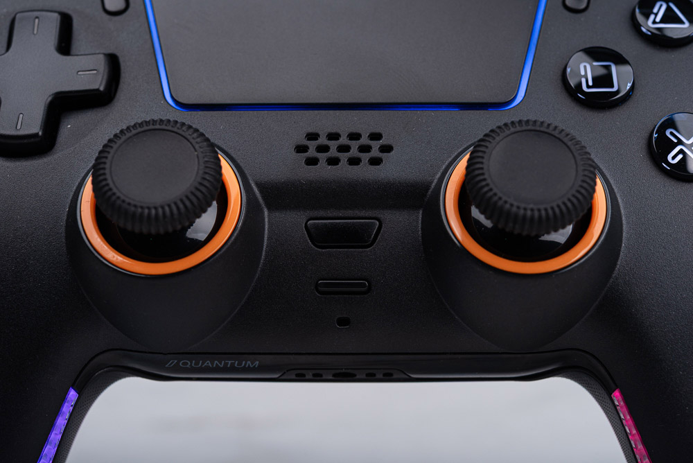 Quantum 極域採用霍爾效應電磁感應的左右搖桿,外觀上有著線條外圈能大大增加手指的摩擦力,大拇指在各種操作下,都能精準的推動搖桿。
