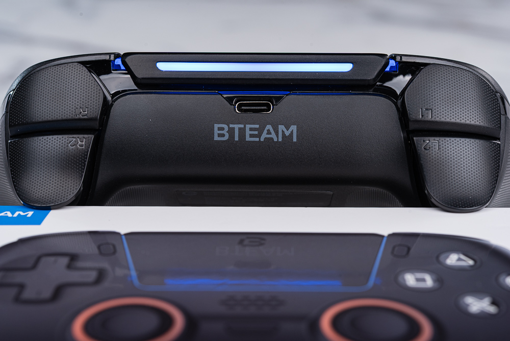 Bteam Quantum 極域有著與原廠相同的人體工學握把設計,讓玩家在原廠、副廠手把間切換無須重新適應。而實際體驗比較後,Quantum 極域的方向鍵行程較快、○╳□△ 按鍵按壓克數相對輕一點並有較清脆的回饋聲響,而 R1/L1 同樣行程快按壓明確、R2/L2 同樣行程縮短、線性按壓手感。