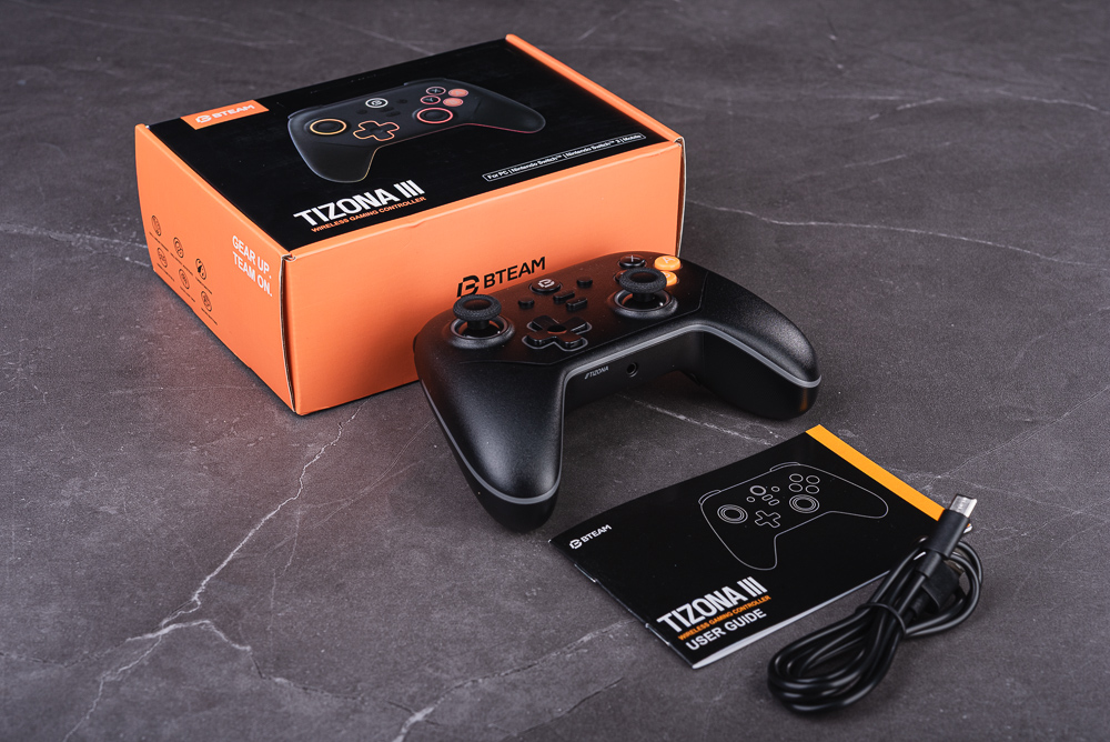 Bteam Tizona III 躍動三代無線手把有著相當舒適的握感,與出色的霍爾效應電磁感應驅動的搖桿與扳機,給予玩家出色的操作體驗,並具備短扳機切換、M1/M2 背鍵,以及玩家喜愛的 Turbo 連發、巨集錄製等功能,補足原廠手把的功能不足之處。
