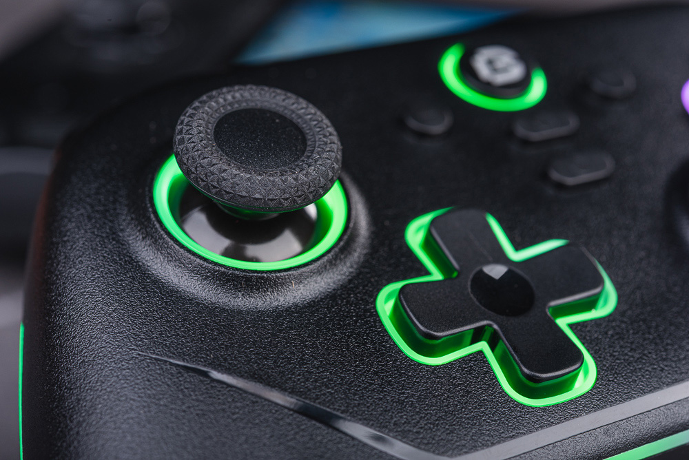 左搖桿採用霍爾效應電磁感應,蘑菇頭上則有著紋路造型,搖桿操控的阻力與 Switch 相似、回彈也相當明確,肯定能長久陪伴玩家遊玩薩爾達傳說。而方向鍵則是十字 DPAD 形式。