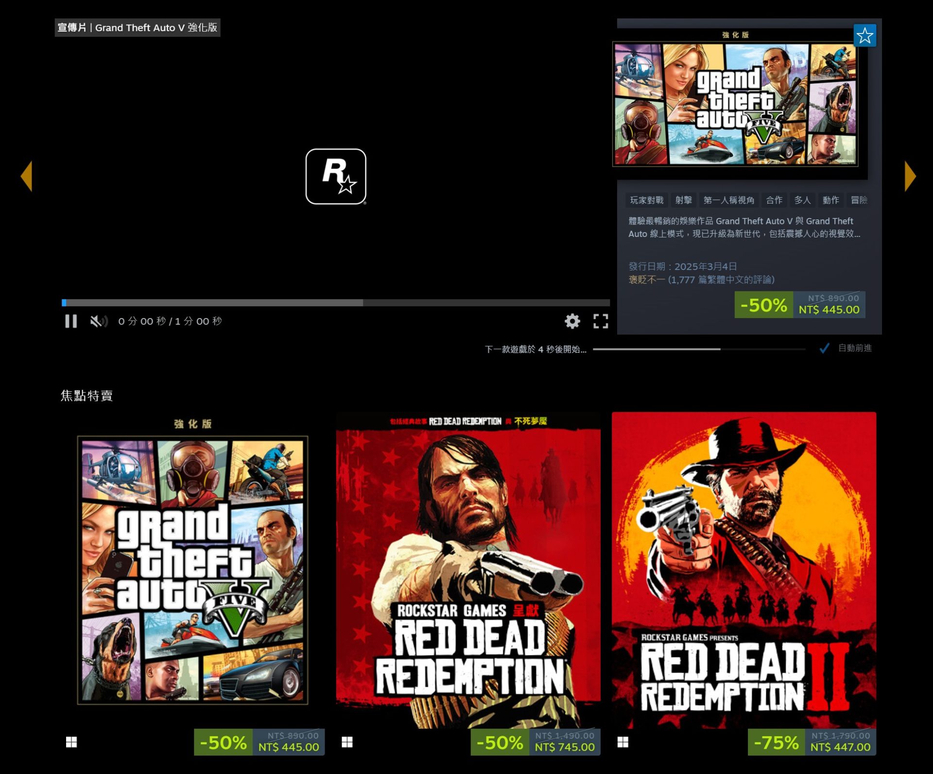 本次特賣涵蓋 Rockstar 旗下多個代表性系列,從至今仍維持高人氣的《Grand Theft Auto V》,到以敘事深度與沉浸感聞名的《Red Dead Redemption》系列皆在促銷名單中。這類發行商特賣向來折扣幅度穩定,對於偏好單機劇情、開放世界體驗的玩家而言相當有吸引力。